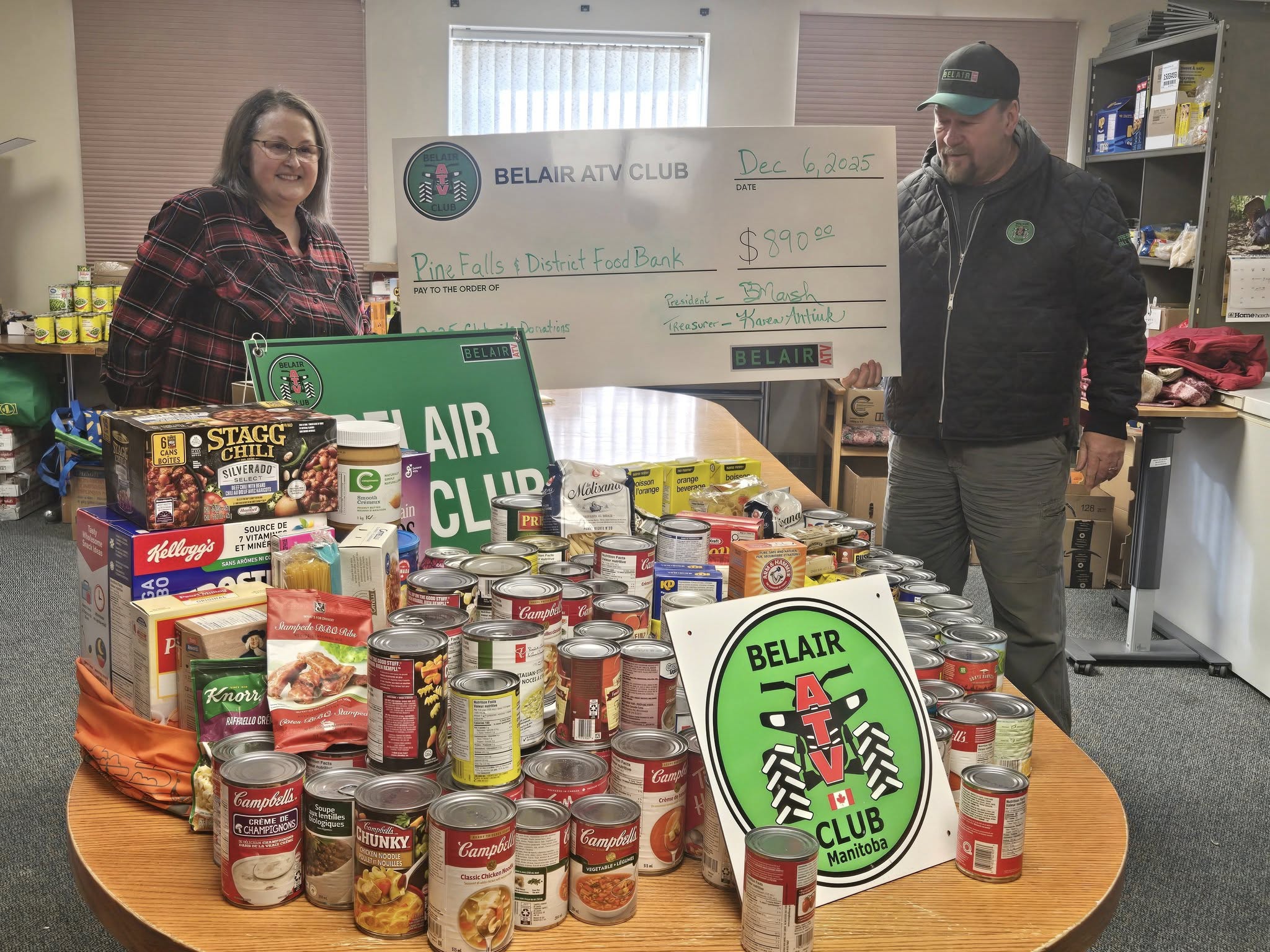 Belair ATV Club had the privilege of making a donation to the Pine Falls and District food bank. We collected food donations on our club rides this season and had a fundraiser to collect $890 in cash for other essentials. We would like to thank all our riders who donated food items and a special thank you to the 4 donors who came through with the large cash donations. Our board members and members from the Pine Falls food bank appreciated the donations…